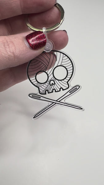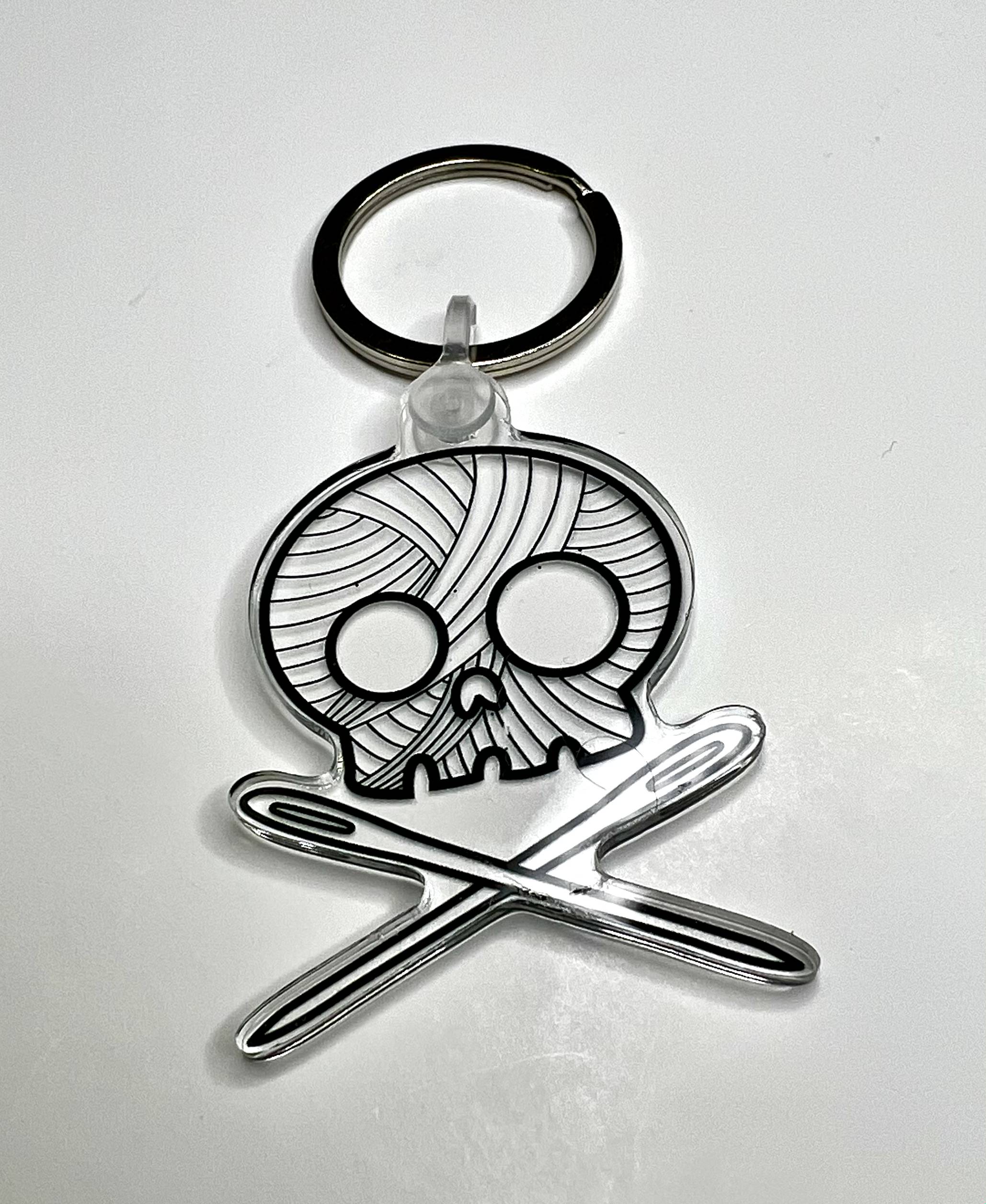Show off your fiber-loving edge with this bold Poison Threads logo keychain! Featuring the signature skull made of yarn with crossbones crafted from stitching needles, this piece is the perfect blend of spooky, stylish, and stitch-obsessed.